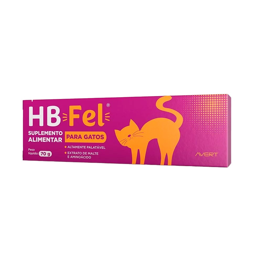 – Indicado para gatos; – Suplemento em pasta; – À base de extrato de malte e aminoácido; – Altamente palatável. HB Fel é um suplemento alimentar composto por extrato de malte e aminoácido. É indicado para gatos, em todas as fases da vida, que necessitem do aporte desses nutrientes. Modo de usar Administrar 3cm (1g) de pasta diretamente na boca do animal, sobre as patas dianteiras ou sobre o alimento, 1 vez ao dia, durante 15 dias consecutivos. Após esse período, fornecer a mesma quantidade, 1 vez por semana ou a critério do profissional responsável pela nutrição de seu animal. Composição Extrato de malte seco de cevada, cistina, lecitina de soja, polietilenoglicol, hidrolisado de fígado de suíno (palatabilizante) e hidrolisado de peixes (palatabilizante).