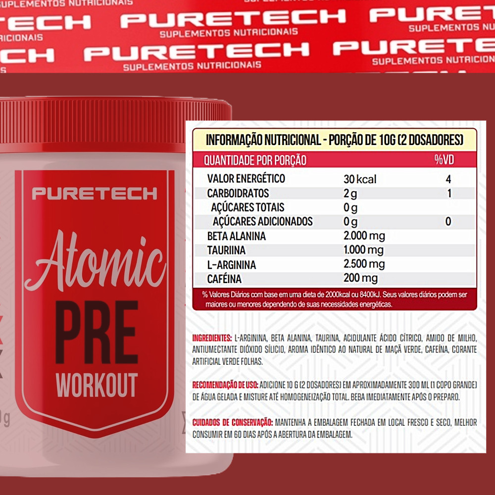 Kit 2x 100% Pure Whey 900g + Pré treino Atomic Maça Verde 300g PURETECH