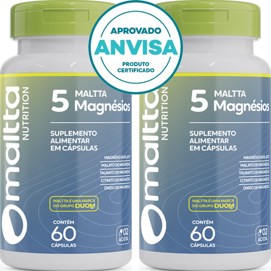 KIT 2x 5 Magnésios - Quelato + Malato + Taurato + Citrato + Óxido - 60 Cápsulas 400mg - Maltta Nutrition