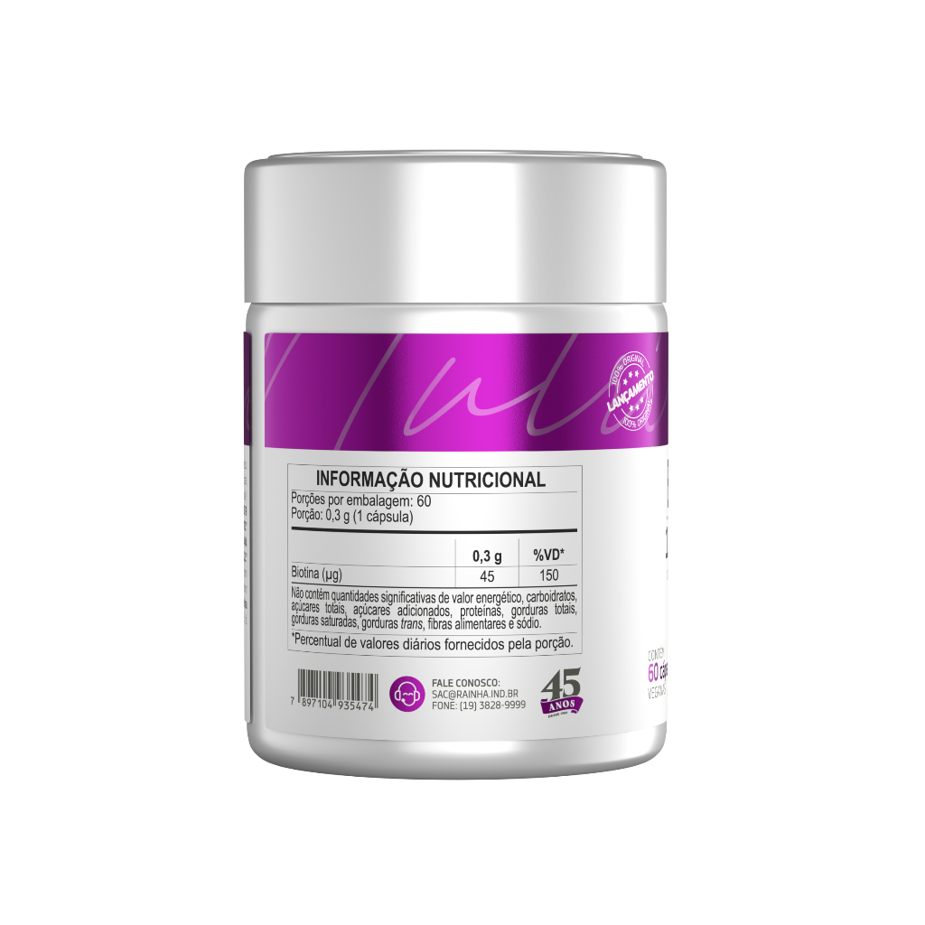 | Kit 2x Biotina 100% pura 45mcg (60 cápsulas) - Body Action este produto | R$ 62,99 | 37% | 4.9/5 | — |