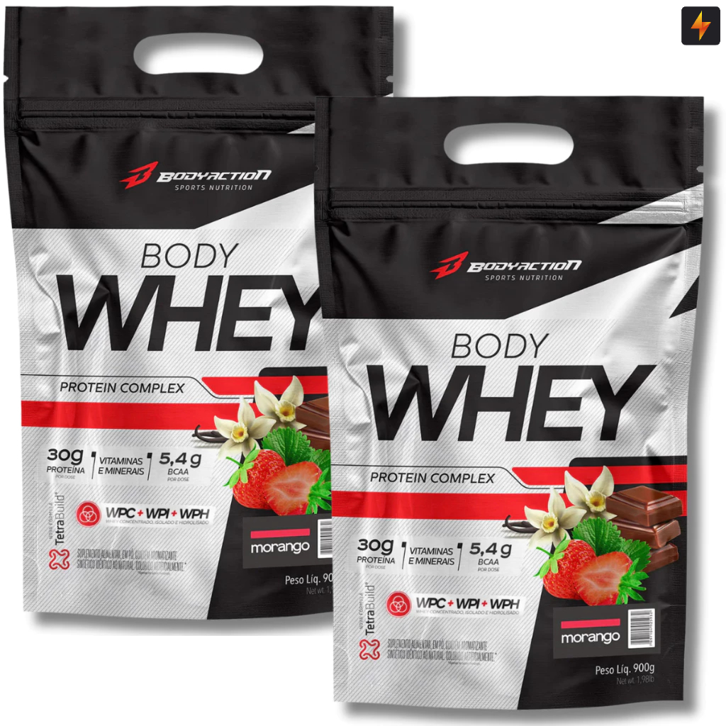 Kit 2x Body Whey Protein 900g Proteína Concentrada Isolada e Hidrolisada Body Action