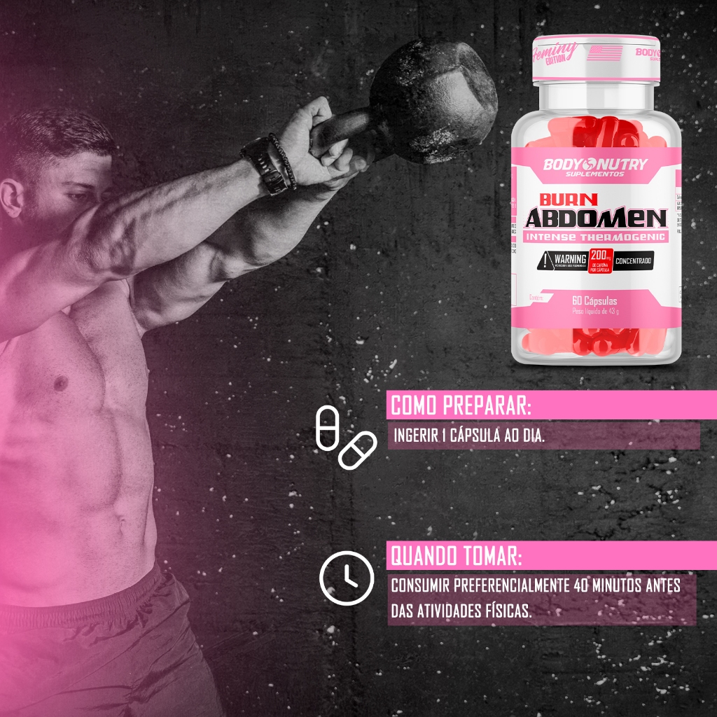 Se você está buscando uma forma eficaz de queimar gordura e definir seu abdômen, o Burn Abdomen Feminy da Body Nutry é a escolha ideal para você. Este suplemento em cápsulas foi especialmente formulado para ajudar a acelerar o metabolismo e aumentar a queima de gordura, especialmente na região abdominal, que é uma das mais difíceis de se perder gordura. Benefícios: • Aumenta gradativamente a resistência aeróbica; • Acelera a definição abdominal; • Garante a perda de gorduras; • Reduz medidas corporais; • Aumenta o rendimento dos treinos; • Impulsiona os ganhos dos exercícios.