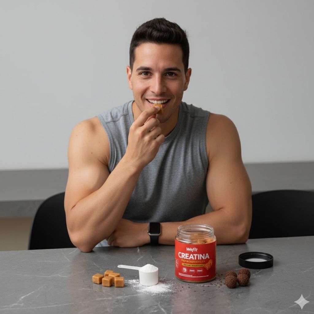 Kit 2x Creatina de Caramelo + Creatina de Brigadeiro – 120 Unidades Mastigáveis – Wefit Sobre o Produto: O Kit Wefit de Creatina Mastigável reúne duas versões saborizadas e inovadoras do suplemento: Caramelo e Brigadeiro, totalizando 120 unidades. Desenvolvido para quem busca praticidade e sabor sem abrir mão da suplementação, o produto apresenta creatina monohidratada em formato mastigável, dispensando preparo, diluição ou uso de líquidos. Com textura macia e sabores indulgentes, é ideal para rotinas intensas e para quem deseja incluir a creatina de forma simples e agradável no dia a dia, antes ou após as atividades físicas. Como Consumir - Consumir conforme a recomendação de um profissional de saúde ou nutricionista. - As unidades podem ser ingeridas individualmente ao longo do dia, de acordo com a dose diária orientada, podendo ser consumidas antes ou após os treinos, conforme preferência pessoal. Benefícios - Praticidade no consumo, sem necessidade de preparo ou diluição - Contém creatina monohidratada, amplamente utilizada em suplementação esportiva - Formato mastigável, fácil de transportar e consumir em qualquer momento - Sabores Caramelo e Brigadeiro, tornando a suplementação mais agradável - Ideal para quem busca uma alternativa aos suplementos em pó ou cápsulas Alergênicos: Não contém glúten. Ingredientes: Creatina monohidratada e ingredientes alimentares utilizados para formulação, textura e sabor Caramelo e Brigadeiro. Advertências - Este produto é um suplemento alimentar e não deve ser utilizado como substituto de uma alimentação equilibrada. - Não é medicamento. - Manter fora do alcance de crianças. - Conservar em local seco, fresco e ao abrigo da luz solar direta. - Gestantes, lactantes, crianças e pessoas com condições de saúde específicas devem consultar um profissional de saúde antes do consumo. Conclusão: O Kit 2x Creatina Mastigável Wefit Caramelo e Brigadeiro é uma opção prática, saborosa e funcional para quem deseja suplementar creatina de forma simples e sem complicações. Com formato inovador e sabores agradáveis, o produto facilita a adesão à suplementação diária, integrando-se facilmente a diferentes rotinas e estilos de vida.