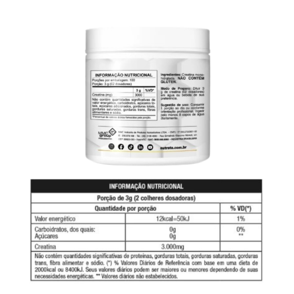 A Creatin Up é usada principalmente para aumentar força muscular e desempenho. Essa creatina é 100% monohidratada. Além disso, não possui conservantes ou aditivos em sua composição, garantindo maior pureza para o suplemento. Se você procura maior potência muscular para melhorar o desempenho do seu treino, essa é uma boa pedida. Além de possuir um elevado padrão de qualidade, é também o melhor custo-benefício do mercado. ------------------------------------------------------ O que é creatina monohidratada? ------------------------------------------------------ A creatina monohidratada é a fórmula cujos efeitos positivos são mais descritos e registrados na literatura científica. Ela pode ser consumida com diversos tipos de líquidos, como água, sucos, chás e outros. Por fim, é o melhor custo-benefício quando o assunto é creatina de qualidade. ------------------------------------- Como tomar creatina? ------------------------------------- Em relação a quantidade, procure um médico ou nutricionista para montar um plano alimentar adequado para o seu caso. Quanto ao uso, a creatina deve ser consumida todos os dias e em qualquer horário. Ou seja, mesmo nos dias que você não treina, precisa continuar suplementando. Uma ótima ideia é colocá-la junto a principal refeição do seu dia para otimizar a absorção da substância. Isso porque a creatina é melhor aproveitada quando consumida junto a carboidratos, bem como laranja, banana ou uva. ----------------------------------------------- Sugestão e Indicação de Uso ----------------------------------------------- É recomendado consumir 1 porção ao dia ou conforme orientação profissional; Ingerir pelo menos 8 copos de água diariamente. -------------------- Ingredientes -------------------- Creatina monohidratada. NÃO CONTÉM GLÚTEN.
