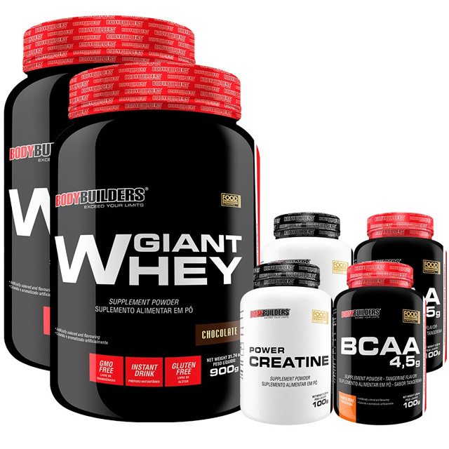 Kit 2x Giant Whey 900g + 2x Power Creatina 100g + 2x BCAA 4,5 100g - Bodybuilders
