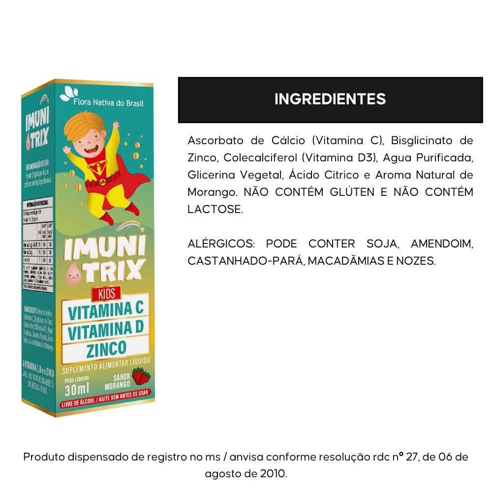 KIT 2X IMUNITRIX ( Vitamina C, D3 e Zinco) 30ml - Flora Nativa Sabor:Morango