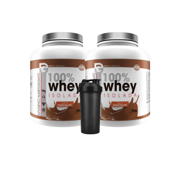 DG LABS - Nutrição de excelência ao seu alcance! COMPOSIÇÃO DO ANÚNCIO: - (2) Whey Protein 100% Isolada 2kg. - (1) Coqueteleira 600ml Preta - Dg Labs. BENEFÍCIOS: - Ganho de MASSA MAGRA; - Aumento da FORÇA e RESISTÊNCIA; - Apoio à PERDA DE PESO; - Recuperação RÁPIDA; VANTAGENS: - 100% PUREZA: Sem aditivos, sem enchimentos, apenas o MELHOR para o seu corpo; - Absorção RÁPIDA; - BAIXO Teor de Carboidratos e Gorduras; - Alto índice de EFICIÊNCIA PROTEICA. DESCRIÇÃO: O Whey Protein 100% Isolado da DG Labs é um suplemento proteico formulado 100% com proteína isolada do soro do leite, a famosa whey protein isolada (WPI) e mais nenhum outro tipo de proteína. Possui maior índice de pureza devido ao processo de filtragem e extração pela qual ela passa. Conta com 36g de proteína por porção e alto teor de outros aminoácidos. Destaca-se no mercado como um dos itens mais vendidos por causa dos seus inúmeros benefícios à saúde, bem-estar e performance atlética. É perfeita para quem segue a dieta à risca e por ser uma whey protein isolada se encaixa em vários objetivos e tipos de esportes por auxiliar tanto no emagrecimento quanto no aumento de massa muscular. TIPO: PROTEÍNA 100% ISOLADA GLUTÉN: NÃO LACTOSE: SIM SUGESTÃO DE CONSUMO: Misture aproximadamente 40g (4 colheres de sopa rasas) em 250mL (1 1/2 copo) de água gelada e agite por 20 segundos. Consumir imediatamente após o preparo. Recomenda-se uma dose diária após o treino. __COQUETELEIRA PRETA 600ml - DG LABS__ QUALIDADES E BENEFÍCIOS: - Livre de BPA e Ftalato: Materiais seguros e sustentáveis; - Sem substâncias prejudiciais à saúde; - Modelo Slim com Fechamento em Click: - Design ergonômico para treinos diários; - Fechamento seguro, sem vazamentos; - Durável e de Alta Qualidade: Materiais resistentes para uso prolongado; - Garantia de qualidade; - Tampa com Vedação Segura: Evita vazamentos durante a mistura; 600ml de Praticidade e Versatilidade: OBSERVAÇÕES: - Imagens meramente ilustrativas. IMPORTANTE: a) Validade dos produtos: de 18 a 24 meses. b) Idade mínima recomendada: 14 anos. c) Este produto é um suplemento dietético, não um medicamento. Suplementa dietas insuficientes. Consulte o seu médico e/ou farmacêutico. d) Vendemos somente produtos originais e devidamente lacrados.