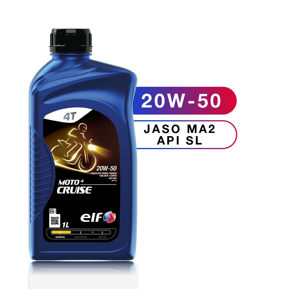 Óleo Elf Evolution, mineral 20W-50 para motos de motores 4 tempos. É perfeitamente compatível com conversores catalíticos e com o uso de combustíveis livres de chumbo. Garantindo proteção e lubrificação ideal para os motores convencionais, sendo indicado para uso urbano diário e em regiões rurais. Os intervalos de troca que podem chegar até *3.000 km e os graus de viscosidade mínimos devem ser respeitados de acordo com a recomendação do fabricante da motocicleta. Normas Internacionais: - API SL - JASO MA2 Características - Protege o motor em condição de uso diário e severo. - Aditivos detergentes que garantem maior limpeza do motor . - Viscosidade que garante a perfeita lubrificação mesmo com variações de temperaturas. O óleo de moto ELF MOTO 4 CRUISE 20W-50 é um lubrificante formulado com bases minerais especialmente selecionadas para manter a limpeza do motor, evitando a formação de borras e depósitos. Foi desenvolvido para trabalhar em diferentes condições climáticas, seu grau de viscosidade garante um filme de lubrificação eficiente mesmo com grandes variações de temperatura. Preferidas por muitos por apresentarem ótima mobilidade, principalmente em grandes centros urbanos, as motos exigem trocas de óleo periódicas que dependem não só da quilometragem, mas também do tipo de uso do veículo. Motos de passeio que ficam muito tempo paradas, ou as que são utilizadas com bastante frequência em cidades que exigem um “anda e para” constante, por exemplo, precisam de mais cuidado, uma vez que o óleo pode perder sua eficácia, prejudicando o funcionamento do veículo. Responsável por prolongar a vida útil da moto e promover uma melhora em sua performance, o óleo para moto reduz o atrito entre as peças, protegendo o motor contra o desgaste e corrosão, auxilia na manutenção da estabilidade térmica e mantém os componentes internos devidamente limpos. Diferentes tipos de óleos podem ainda diminuir a emissão de poluentes, facilitar partidas a frio, aumentar a potência do motor, entre outras vantagens. Benefícios - Vedação de anéis e pistões, ganho de potência: O Óleo para moto ELF MOTO 4 CRUISE 20w50 garante a vedação dos pistões e anéis através da redução da formação de depósitos. Este fato leva a redução do consumo de lubrificante, baixa volatilidade, prevenindo a perda de compressão e perda de potência. - Filme lubrificante homogêneo, proteção antidesgaste: O Óleo para moto ELF MOTO 4 CRUISE 20w50 elimina a ‘aeração’ do lubrificante através da prevenção da formação de espuma o que consequentemente evita partes não lubrificadas do motor, prevenindo o desgaste antecipado dos componentes. - Redução dos custos de manutenção: formulado com selecionados aditivos antidesgaste, o óleo para moto ELF MOTO4 CRUISE 20w50 previne a deterioração prematura das partes móveis do motor. Sua formulação de alto desempenho e qualidade garante a manutenção das propriedades dos lubrificantes durante seu período de uso, mantendo sua viscosidade e proteção ao motor até a próxima troca assim garantindo maior vida útil ao motor e redução nos custos de manutenção. - Proteção do motor em condições extremas de uso: A viscosidade HTHS (alta temperatura e alto cisalhamento) do óleo para moto ELF MOTO 4 CRUISE 20w50 fornece ao usuário performance ideal mesmo em condições severas de uso. Seu grau de viscosidade garante proteção ao motor, graças ao filme lubrificante em conjunto com as propriedades antidesgaste do óleo, mesmo em condições de altas velocidades, pressões ou cargas. Recomendações de uso Antes da utilização do produto, o manual do proprietário deve ser verificado. A substituição do óleo lubrificante deverá ser realizada de acordo com as recomendações do fabricante. O Lubrificante não deverá ser armazenado em ambientes com temperatura superior a 60°C. O produto deverá ser conservado fora do alcance dos raios solares, frio intenso ou grandes variações de temperatura. Se possível, a embalagem não deverá ser exposta às intempéries. Caso contrário deverá ser conservado na posição horizontal para evitar contaminação e preservação da mesma. Número de registro de producto de ANP - 18523