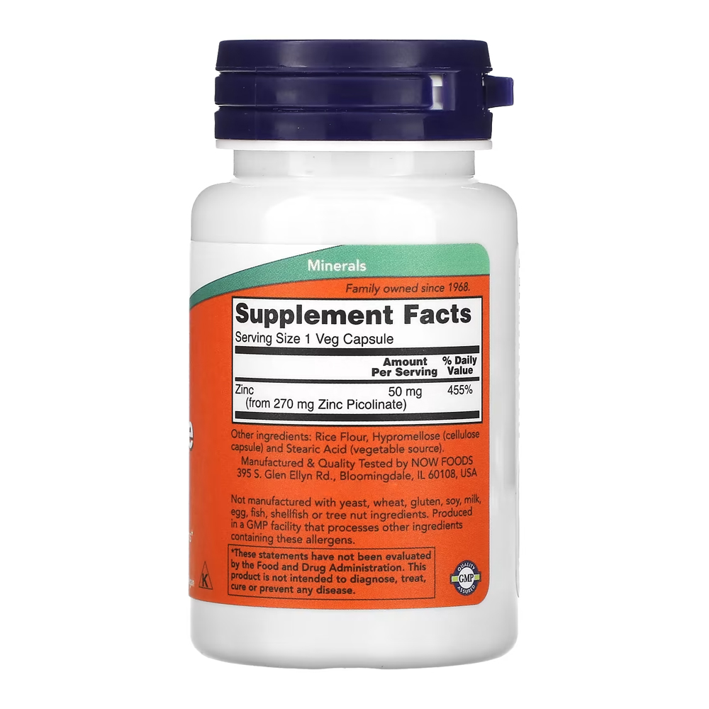 Kit 2x Picolinato de Zinco 50mg Now Foods 60 Veg Cáps Importado/Made in Usa