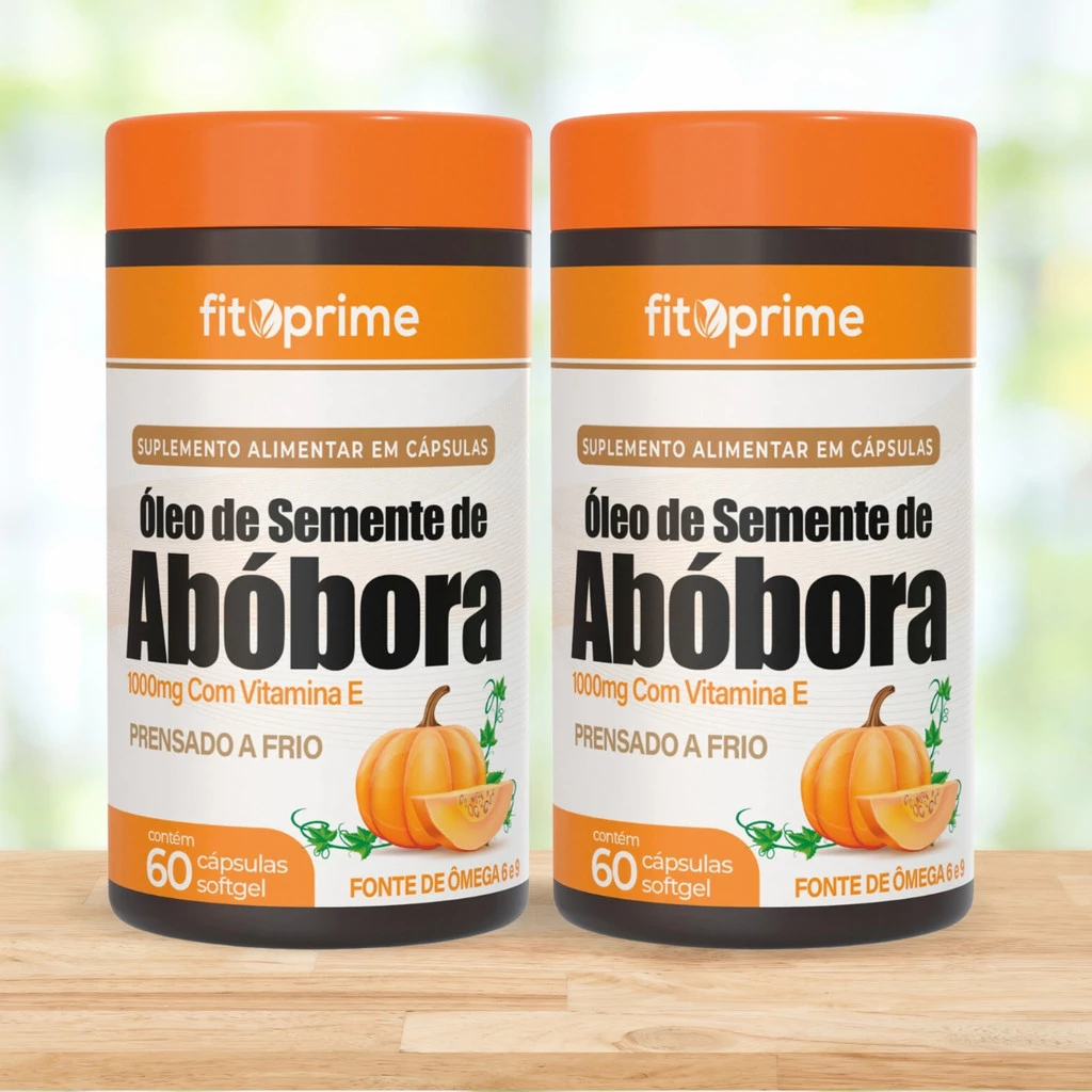 Kit 2x Potes Óleo de Semente de Abóbora 1000mg com Vitamina E 60 cápsulas - Fitoprime