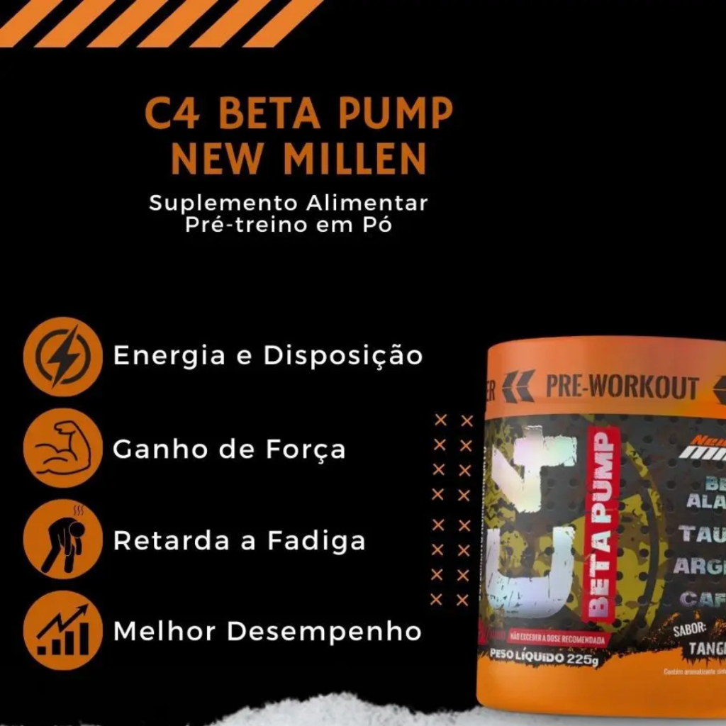 O C4 Beta Pump é o pré-treino ideal para elevar sua performance a outro nível. Eleito 4 vezes o melhor pré-treino nacional, este suplemento altamente concentrado foi formulado para fornecer energia explosiva, foco extremo e maior resistência durante os treinos. Com ingredientes poderosos como cafeína, taurina, alanina e arginina, o C4 Beta Pump melhora a força, combate a fadiga muscular e promove vasodilatação, permitindo evolução contínua nos seus resultados. Perfeito para atletas e praticantes de atividades físicas que buscam o máximo desempenho. ------------------ Benefícios: ------------------ - Energia explosiva e foco extremo: Ideal para maximizar a performance nos treinos; - Combate à fadiga muscular: Prolonga a resistência durante atividades intensas; - Vasodilatação: Melhora a circulação e entrega de nutrientes aos músculos. ---------------------------- Sugestão de Uso: ---------------------------- Diluir 5g (1/2 copo dosador) em 200ml de água. Consumir até 30ml a cada 2 horas, ou conforme orientação profissional. --------------------------------------------- Composição e Ingredientes: --------------------------------------------- - Cafeína: Aumenta a energia e o estado de alerta; - Taurina: Auxilia na recuperação muscular e combate à fadiga; - Alanina: Melhora a resistência e reduz o cansaço muscular; - Arginina: Promove vasodilatação, melhorando a circulação e a entrega de nutrientes aos músculos; - Extrato de semente de uva: Efeito vasodilatador que aumenta a força muscular; - Palatinose™: Carboidrato de baixo índice glicêmico para energia prolongada. - Vitamina B6 e minerais (zinco, cálcio, magnésio): Suporte nutricional completo; - Não contém glúten. - Alérgicos: Pode conter ovo, leite, soja e amendoim. - Este produto contém cafeína. Não recomendado para pessoas sensíveis à cafeína.