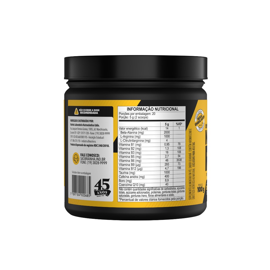 NUCLEAR RUSH - “CONTÉM CITRULINA”. - “NOVA FÓRMULA COM BORO E CITRULINA”. INGREDIENTES: Beta-Alanina, Taurina, Arginina (L-Arginina), Cafeína, Isomaltulose, Coenzima Q10, Vitamina B6 (Cloridrato de Piridoxina),Boro (Tetraborato de Sódio Decahidratado), Vitamina B3 (Nicotinamida), L-Citrulinilarginina (Alga Chondrus crispus invernal), Vitamina B5 (Pantotenato de Cálcio), Vitamina B2 (Riboflavina), Vitamina B1 (Nitrato de Tiamina), Ácido Fólico (Ácido Pteroilmonoglutâmico), Vitamina B12 (Cianocobalamina), Antiumectante, Aroma Idêntico ao Natural de Morango, Acidulante Ácido Cítrico, Aromatizante Pimenta vermelha (Capsicum Annum) e Edulcorante Sucralose. NÃO CONTÉM GLÚTEN. ALÉRGICOS: PODE CONTER DERIVADOS DO LEITE E SOJA*. *Produzido em equipamento onde se processam estes alimentos, contudo, ações preventivas de limpeza são adotadas para evitar essa ocorrência. MODO DE PREPARO: Misturar 1 scoop (2,5 g) em 75 ml (meio copo) de água ou bebida da sua preferência. SUGESTÃO DE USO: Consumir 2 scoops (5 g) ao dia, preferencialmente 1 (uma) hora antes do treino. A legislação vigente diz que o máximo permitido é 2000 mg de Beta Alanina dividido em doses de 300 mg, deste modo recomendamos o fracionamento do mesmo. Consumir 23 ml à cada 2 horas. PRODUTO INDICADO PARA MAIORES DE 19 ANOS. EXCLUSIVO PARA ATLETAS. ADVERTÊNCIAS: “ESTE PRODUTO NÃO É UM MEDICAMENTO”. “NÃO EXCEDER A RECOMENDAÇÃO DIÁRIA DE CONSUMO INDICADA NA EMBALAGEM”. “MANTENHA FORA DO ALCANCE DE CRIANÇAS”. “ESTE PRODUTO NÃO DEVE SER CONSUMIDO POR GESTANTES, LACTANTES E CRIANÇAS”. “CONTÉM CITRULINA”. CONSERVAÇÃO: Manter em lugar fresco, não úmido e ao abrigo de luz. Não consumir o produto se o lacre de proteção estiver violado. Após aberto, consumir preferencialmente em 60 dias. ATENÇÃO: Este produto contém características higroscópicas, podendo absorver parte da umidade do ar e empedrar. Deste modo, mantenha o frasco firmemente fechado após uso e não retire os sachês de sílica. Caso haja empedramento, o produto ainda mantém solubilidade em água não alterando suas propriedades funcionais.