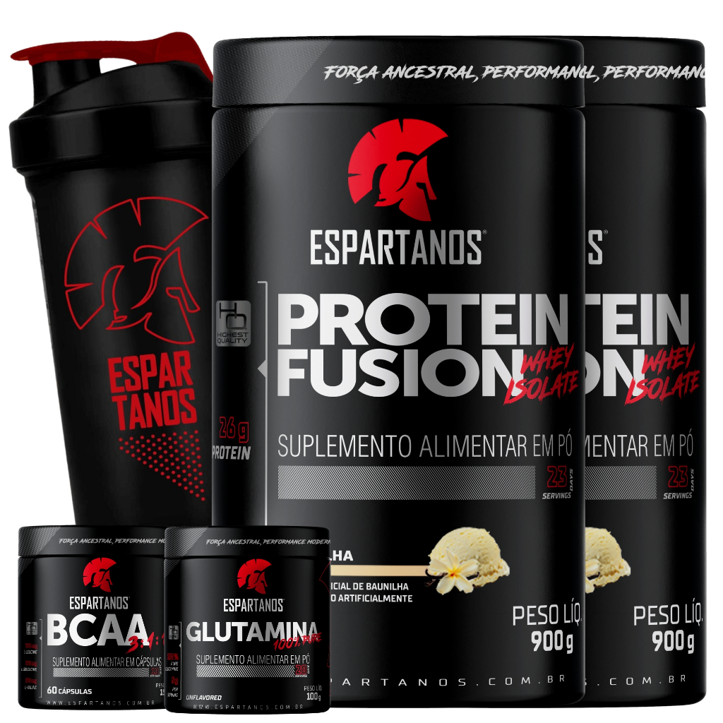 Kit 2x Protein Fusion Whey Isolado + Bcaa + Glutamina + Copo