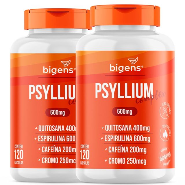 Kit 2x Psyllium Complex Bigens, Fibras + Quitosana + Espirulina + Cafeína Anidra + Cromo, 120 Caps, Bigens