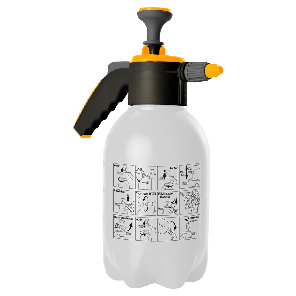 # Auto Equip # Bem-vindo(a)! Pulverizador Manual WAP GPM2L01 2L Jato Regulável Gatinho com Trava O pulverizador manual WAP veio para trazer mais facilidade na hora de cuidar do seu jardim. É indicado para umedecer plantas, para aplicação de inseticidas, herbicidas, fungicidas e soluções naturais. Não devem ser utilizados produtos químicos como solventes e ácidos. Possui bico para pulverizar com jato regulável, sendo um produto prático para utilizar no dia a dia. Conta com gatilho com trava para pulverização contínua, oferecendo mais conforto durante o uso. O pulverizador manual 2 litros WAP é ideal para cuidar de plantas, seja dentro ou fora de casa. Feito com materiais de qualidade, é resistente para diversas tarefas. Nesse sentido, pode ser utilizado para os mais variados usos. Por exemplo, pode ser adequado para encher balões com ar ou água, ou auxiliar na pulverização de soluções não abrasivas em superfícies a serem limpas, como motos e até em estofados. Além disso, a válvula de segurança para alívio da pressão interna é ativada automaticamente quando o limite de pressão é excedido, trazendo mais segurança durante a utilização. Seu jardim sempre bem cuidado e soluções para o dia a dia, é WAP! Especificações técnicas: Capacidade do recipiente: 2 Litros Bico com jato regulável: Sim Gatilho com trava para pulverização contínua: Sim Válvula de segurança para alívio da pressão interna: Sim Compressão prévia para pressurizar: 10 Material da parte superior: Polipropileno (PP) Material do bico: Polipropileno (PP) Material do recipiente: Polietileno (PE) Cor: Amarelo com Preto e Cinza Peso: 0,420 Kg Dimensões da caixa master (CxLxA): 67,0 x 56,0 x 35,0 cm Dimensões do produto (CxLxA): 13,5 x 24,5 x 33,8 cm Dimensões da embalagem (CxLxA): 26,0 x 48,0 cm (Plástica) Conteúdo da embalagem: 2 Pulverizador Manual 2L WAP GPM2L01 2 Bico extra para pulverizar 2 Oring extra para vedação IMPORTANTE: Garantia de 3 meses Produto original e certificado Enviamos em até 24h úteis Entrega garantida pelo Mercado Envios Utilize o campo de “Perguntas e respostas” e esclareça suas dúvidas com nosso suporte técnico
