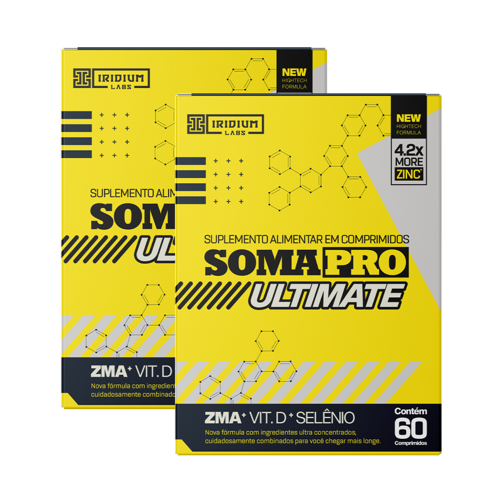 >> Soma Pro Ultimate - Nova fórmula, potência máxima<< A combinação de vitaminas e minerais que potencializa o metabolismo energético e hormonal e maximiza a síntese de proteínas promovendo muito mais ganhos de hipertrofia, força e performance. Soma Pro Ultimate é a versão ultra concentrada da combinação de Zinco, Magnésio, Vitamina B6 e Selênio, que possui diversos estudos científicos que comprovam seus benefícios no aumento da hipertrofia e da força. Cada dose de Soma Pro Ultimate fornece 422% das necessidades mínimas diárias de Zinco recomendadas para um adulto. BENEFÍCIOS: Aumenta os níveis de testosterona livre, Estimula o crescimento muscular, Aumenta os níveis de hormônios anabólicos, Promove aumento da força muscular, Melhora a recuperação muscular. CARACTERÍSTICAS: FÓRMULA ULTRA CONCENTRADA Os ingredientes que você já conhecia, ainda mais concentrados. ZINCO: Contribui para a manutenção dos níveis de testosterona no sangue. MAGNÉSIO: Auxilia na redução do cansaço e fadiga. SELENIUM: Ação antioxidante, fortalece o sistema imunológico. NIACINA: Favorece redução de fadiga e cansaço, melhorando o desempenho físico. VITAMINA B6: Ajuda na normalização das atividades hormonais. CÁLCIO: Essencial para saúde óssea e contração muscular. MODO DE CONSUMO: Sugere-se a ingestão de 2 comprimidos ao dia.