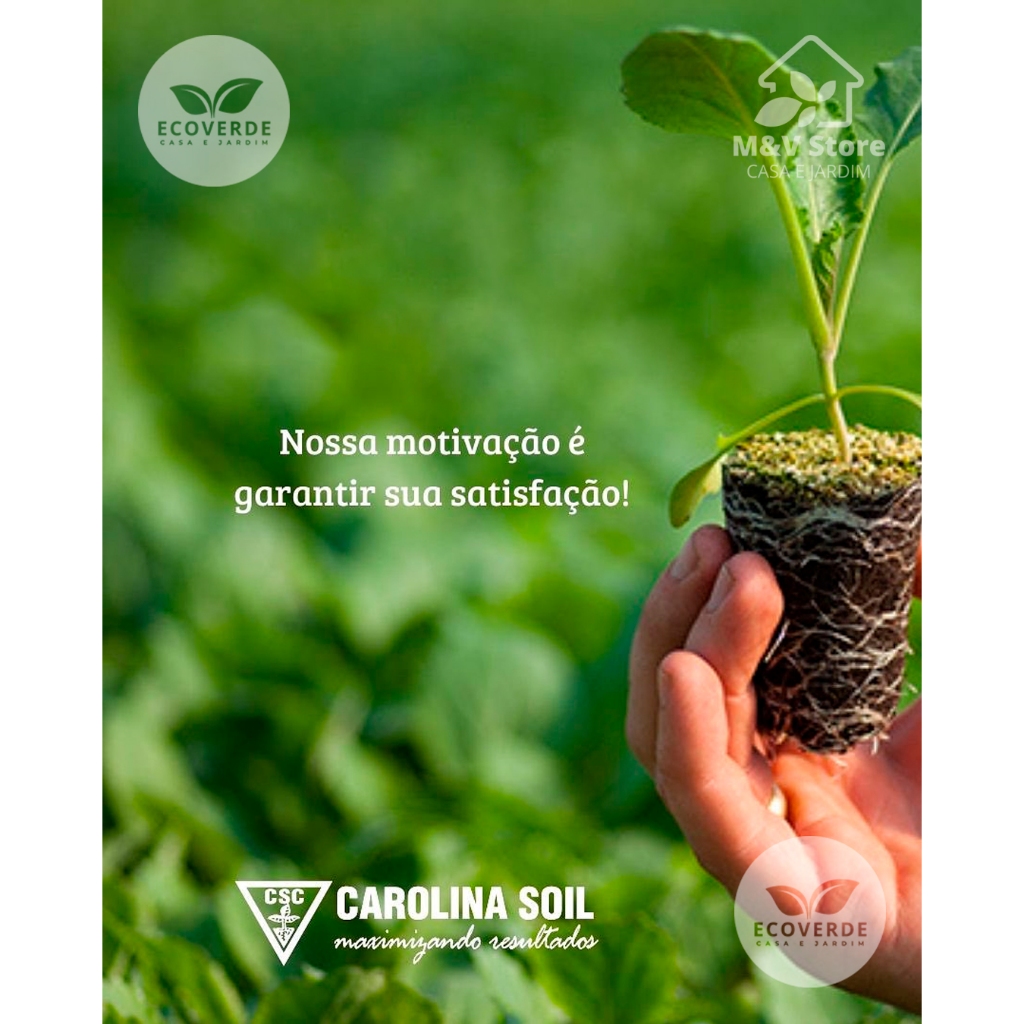 Kit com 02 unidades de Substrato Carolina Soil Formulação Completa 35H LXXXVI - 45 Litros (8 kg) Descubra o Substrato Carolina Soil Formulação Completa 35H LXXXVI, a escolha ideal para produtores exigentes e apaixonados por jardinagem! Perfeito para plantas, hortas e mudas, este substrato profissional é amplamente utilizado na produção de flores, hortaliças, florestais, tabaco e muito mais. Especificações do Produto: - Saco: 8 kg - Aproximadamente 45 litros - Composição: Turfa Sphagnum, Vermiculita Expandida, Casca de Arroz Torrefada, Fibra de Coco (terceiro) e Fibra de Madeira Importada. Indicado Para: - Produção de mudas (flores, hortaliças, florestais e tabaco) - Cultivo em vasos (flores, hortaliças, cactos, suculentas, rosas do deserto e plantas ornamentais em geral) Benefícios do Substrato Carolina Soil: - Alto Percentual de Matéria Orgânica: Garante um ambiente nutritivo para o desenvolvimento das plantas. - Nutrientes Disponíveis: Prontos para serem absorvidos pelas plantas. - Livre de Contaminantes: Mais segurança para suas plantas. - Produto Leve: Facilita o manuseio e transporte. - Equilíbrio Ideal: Excelente retenção de água aliada à boa drenagem. - Melhor Enraizamento: Proporciona excelente aeração e retenção de água, promovendo o crescimento rápido das raízes. Sobre a Empresa Carolina Soil: A Carolina Soil do Brasil é reconhecida pela sua qualidade e inovação, atendendo diversos segmentos como: Tabaco, Silvicultura, Hortaliças, Flores, Frutas, Café, Cacau, Plantas Nativas, Cana-de-Açúcar, entre outros. Tire suas dúvidas no chat. Estamos à disposição para ajudar!