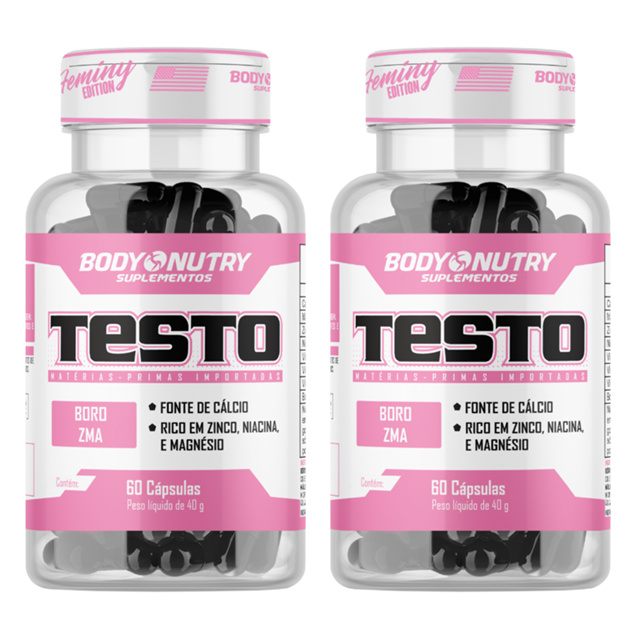 Kit 2x Testo feminy, 60 cáps - Body Nutry - Rico em Zinco, Magnésio, Boro, Vitamina B6, Acido Malíco