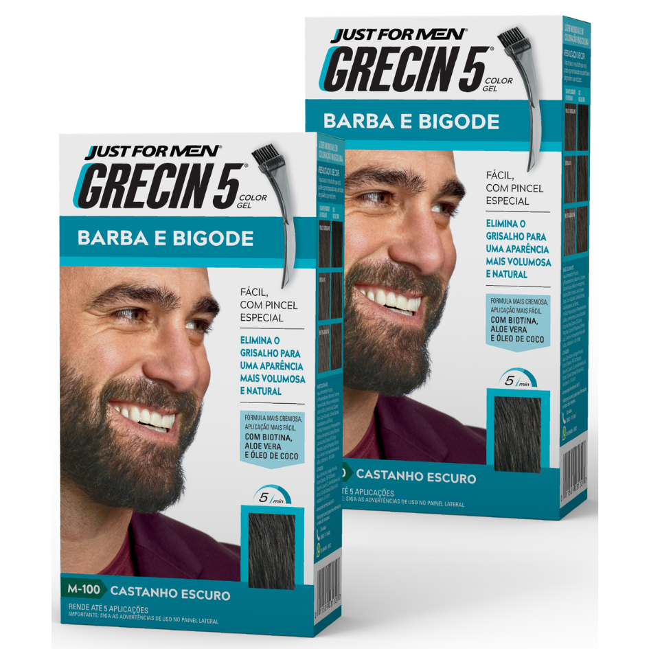 Kit 2x unidades - Grecin 5 Color Gel Barba e Bigode Castanho Escuro M-100 28g - Cobre os fios grisalhos em 5 minutos