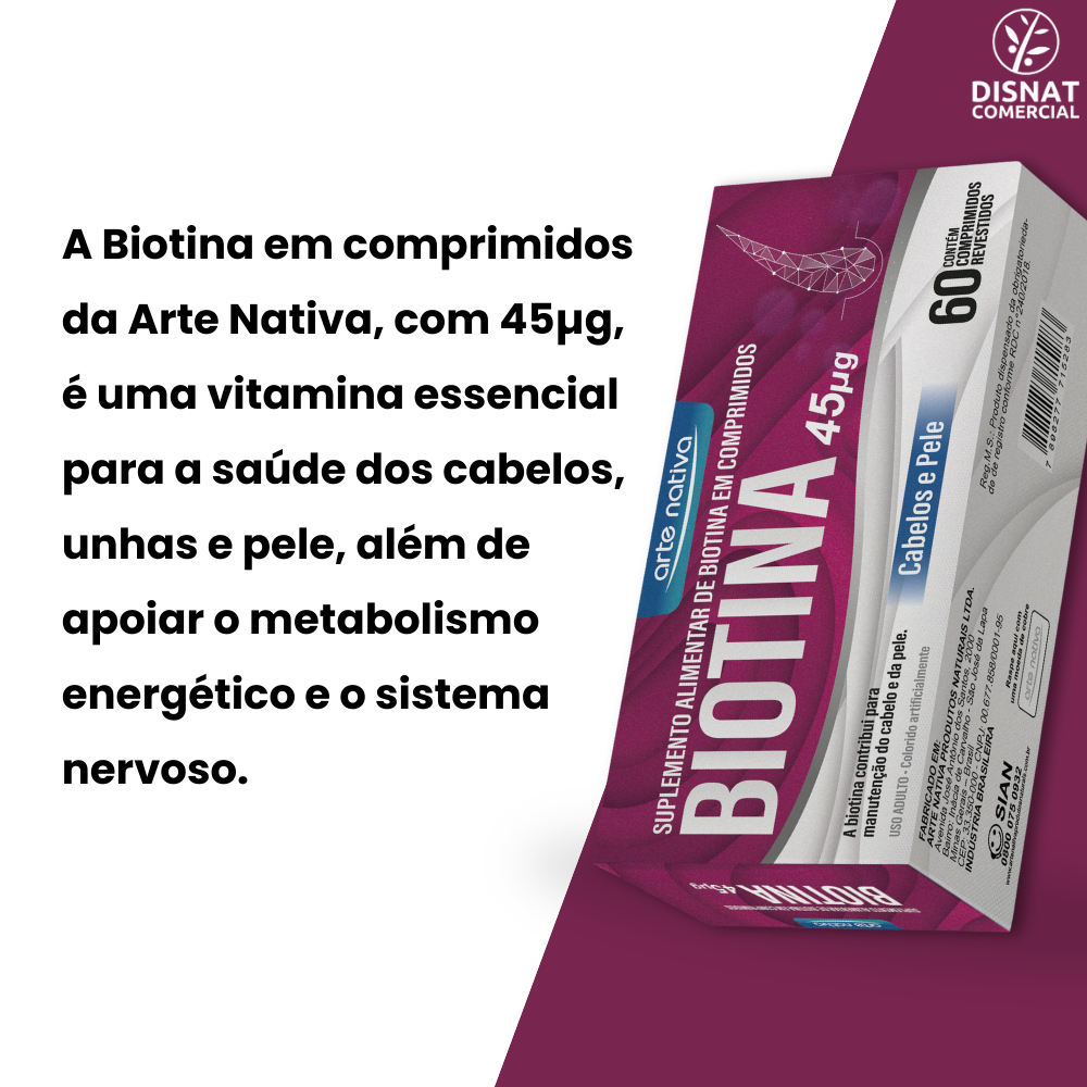 Kit 2x Vitamina Biotina 45µg Cabelos e Unhas 60 Comprimidos - Arte Nativa