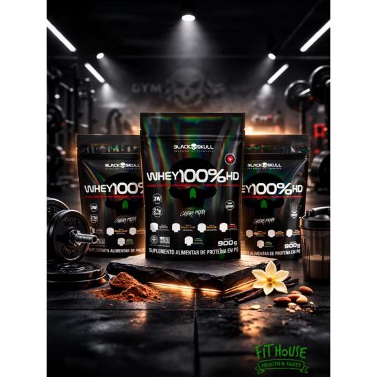 O Whey 100% HD da Black Skull é um suplemento proteico desenvolvido especialmente para atletas e praticantes de atividades físicas que buscam crescimento muscular, melhor recuperação pós-treino e aumento de desempenho. Formulado com proteína concentrada do soro do leite (WPC), ele oferece uma excelente concentração de aminoácidos essenciais, incluindo os BCAAs, fundamentais para o anabolismo muscular. Com rápida absorção, o Whey 100% HD é ideal para ser consumido logo após os treinos ou em momentos estratégicos ao longo do dia. Apresentado na versão refil de 900g, oferece praticidade no armazenamento e reposição da embalagem original. Como Consumir - Diluir 2 colheres de sopa (aproximadamente 30g) em 150 a 200ml de água gelada ou bebida de sua preferência. - Consumir de uma a duas porções ao dia ou conforme orientação de nutricionista ou médico. - Recomendado principalmente após o treino, podendo também ser consumido entre as refeições ou ao acordar, dependendo das necessidades nutricionais individuais. Benefícios - Auxilia no ganho de massa muscular magra - Favorece a recuperação muscular pós-exercício - Rico em aminoácidos essenciais, incluindo BCAAs - Proteína de alto valor biológico - Rápida absorção - Ajuda na manutenção e reparo dos tecidos musculares - Pode ser incluído em dietas de controle de peso (sob orientação) Alergênicos - Contém derivados de leite e soja (lecitina de soja - utilizada para instantaneização). - Pode conter traços de: ovo, amendoim, castanhas, trigo e glúten, devido ao compartilhamento de equipamentos na produção. Ingredientes: Proteína concentrada do soro do leite (WPC), cacau em pó (para os sabores com chocolate), aromatizantes, edulcorante sucralose e emulsificante lecitina de soja. Os ingredientes podem variar levemente conforme o sabor. Verificar sempre o rótulo da embalagem. Advertências - Este produto não substitui uma alimentação equilibrada e seu consumo deve ser orientado por nutricionista ou médico. - Não exceder a recomendação diária de consumo indicada na embalagem. - Manter fora do alcance de crianças. - Conservar em local seco, fresco e ao abrigo da luz. - Após aberto, manter bem fechado e consumir preferencialmente em até 30 dias. - Pessoas alérgicas a leite ou soja devem evitar o consumo. - Produto indicado para maiores de 19 anos. Conclusão: O Whey 100% HD Refil 900g da Black Skull é uma excelente opção para quem busca um suplemento proteico de qualidade, com foco na construção muscular e recuperação. Sua formulação com proteína concentrada do soro do leite garante uma boa absorção e perfil de aminoácidos balanceado. Prático, saboroso e eficiente, é ideal para quem deseja otimizar os resultados dos treinos com o suporte de uma marca reconhecida no mercado de suplementos.