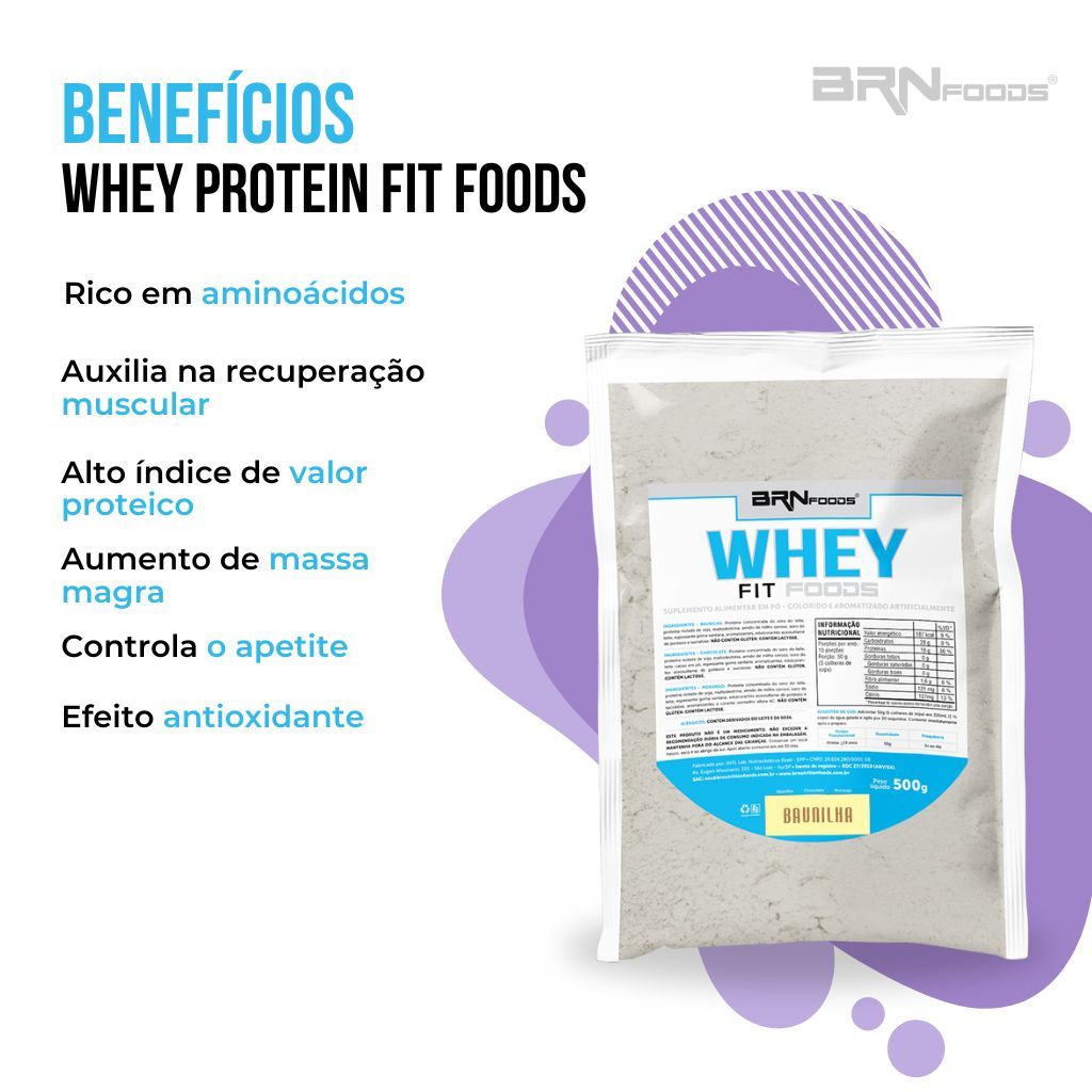 Whey Fit Foods – BRN Foods Whey Fit Foods é um suplemento alimentar proteico em pó formulado a partir de proteína concentrada do soro do leite, associado a outros ingredientes conforme formulação. Produto desenvolvido para complementar a ingestão diária de proteínas na alimentação. Produto disponível nos sabores Baunilha, Chocolate e Morango. Ingredientes Baunilha: Proteína concentrada do soro do leite, proteína isolada da soja, maltodextrina, waxy maize, soro do leite, espessante goma xantana, aromatizantes, edulcorantes acessulfame de potássio e sucralose. Chocolate: Proteína concentrada do soro do leite, proteína isolada da soja, maltodextrina, waxy maize, soro do leite, cacau em pó, espessante goma xantana, aromatizantes, edulcorantes acessulfame de potássio e sucralose. Morango: Proteína concentrada do soro do leite, proteína isolada da soja, maltodextrina, waxy maize, soro do leite, espessante goma xantana, aromatizantes, edulcorantes acessulfame de potássio, sucralose e corante allura AC. Sugestão de uso Adicionar 50 g de Whey Fit Foods em 300 ml de água ou outra bebida de sua preferência. Utilizar uma coqueteleira para preparar e facilitar a mistura. Pode ser preparado também com frutas ou outros ingredientes, conforme preferência. Avisos Este produto não é um medicamento. Não exceder a recomendação diária de consumo indicada na embalagem. Manter fora do alcance de crianças. Gestantes, nutrizes, crianças, idosos e pessoas com enfermidades devem consultar um profissional de saúde antes do consumo.