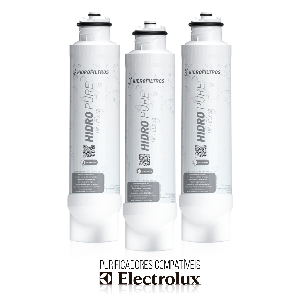 KIT 3/2/1 Refil para os Purificadores de Água para Electrolux. Favor escolher a quantidade antes de finalizar a compra. *** PARA PURIFICADORES DE ÁGUA ELECTROLUX *** ORIGINAL HIDROFILTROS Modelo Compatível com: PE12A PE12B PE12G PE12V “As marcas citadas são propriedades de seus respectivos fabricantes e aparecem apenas para demonstrar a compatibilidade deste produto.” Com uma Tecnologia de Filtragem avançada, e aprovada por todos os critérios do Inmetro, possui eficiência comprovada em retenção de partículas, controle microbiológico e na redução de cloro livre. Vida útil equivalente a 10.000 garrafinhas de água (5000 litros) Alto poder de purificação e controle microbiológico O Carvão Ativado com Íons de Prata reduz todo o tipo de partículas sólidas e sedimentos de metais, barro, areia, ferrugem, algas e fungos. Também inibe o desenvolvimento de bactérias e outros microrganismos, além de reduzir odores e sabores. A barreira de Polipropileno Meltblown permite alta vazão e maior capacidade de retenção de contaminantes, purificando ainda mais a água. DADOS TÉCNICOS Temperatura de operação: 1C mín. a 40C máx. Pressão de operação: 29,4 kPa mín. a 392,3 kPa máx. Grau de Filtração: Classe C ( 5 a 15µm) Composição: Refil blindado de Polipropileno e Carvão Granulado Ativado Vazão máxima: 60 l/h Vida útil: 5000 litros Peso líquido: 0,288 Kg Peso bruto: 0,388 Kg Dimensionais Emb. (AxLxP): 324mm x 72mm x 70mm Produto de acordo com a norma ABNT NBT 16098:2012. Elemento filtrando destinado ao uso em água que atenda a portaria N° 2.914 do Ministério da Saúde. INFORMAÇÕES IMPORTANTES! GARANTIA: Nós oferecemos garantia em todos os nossos produtos! Por favor, consultar no anúncio a quantidade de dias para cada produto. COMUNICAÇÃO: Nosso pós-venda é excelente! Entre em contato com a gente pelo chat do Cliente caso tenha algum eventual problema com a sua compra. Muito obrigado pela confiança!