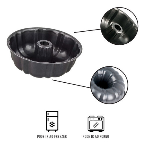 Kit 3/2/1 Forma Redonda com Furo Central para fazer Pudim Bolo Torta com Teflon antiaderente