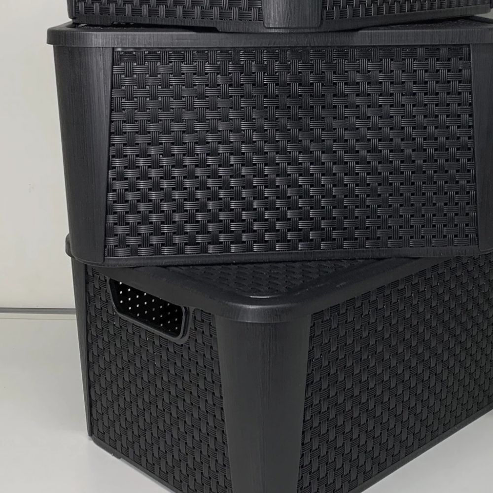 Kit 3/5 Caixas Organizadoras Rattan 17 Litros Preta Com Tampa Organizador Multiuso Roupas Brinquedos