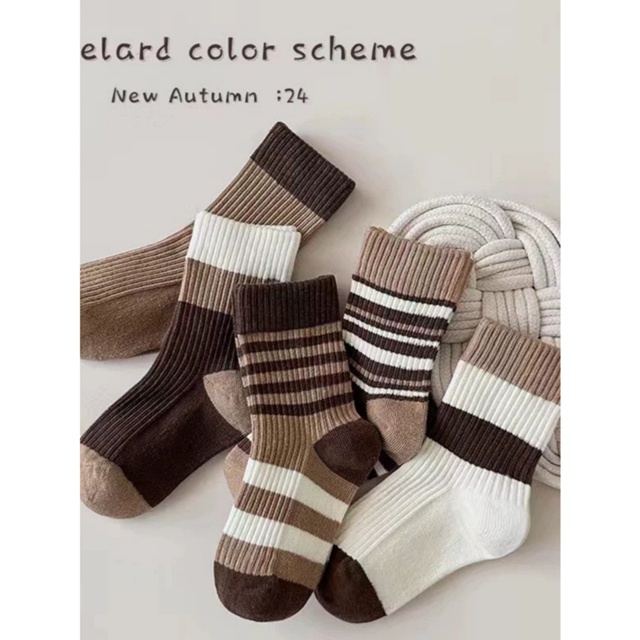 Kit 3 6 12 Meias Cano Médio Estilo Vintage Elegante Tons Terrosos Femininos 35-40