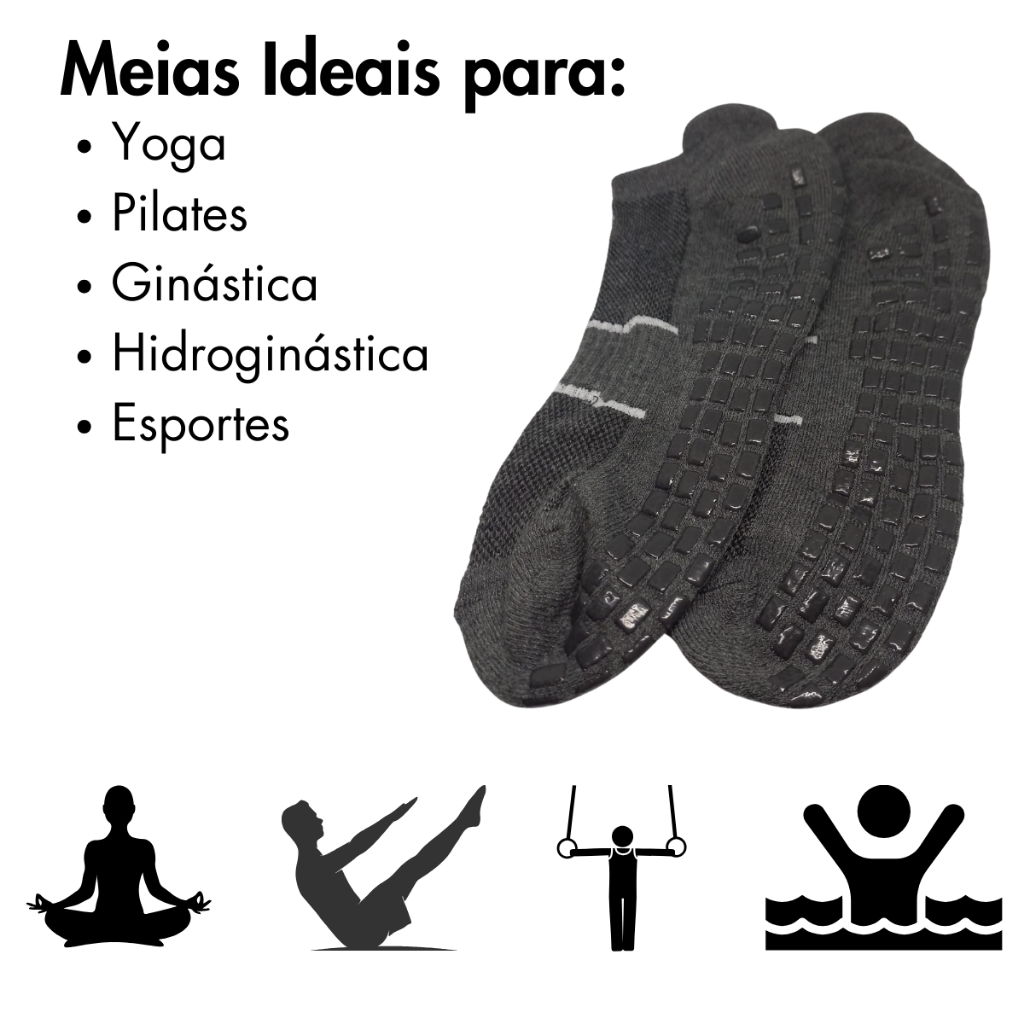 Meia Yoga Masculina - Meias com antiderrapante; - Conforto e segurança para a prática esportiva; - Material resistente anti-odor; - Calça pés de 37 a 42; - Cores Básicas para a prática esportiva; - Excelente custo-benefício. ATENÇÃO - CORES e MODELOS enviados são sortidas e variam conforme estoque; - Cores podem variar devido a tela de seu dispositivo