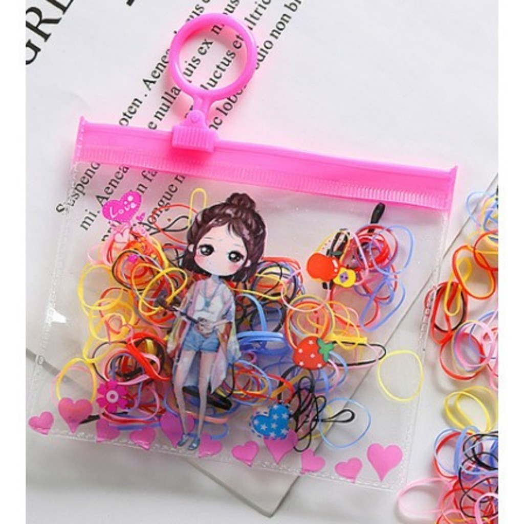 Kit 3/6/9/12 bolsinha com 100 Peças Elástico De Cabelo 1200 Peças Feminino Saco ziplock de desenho animadodioro