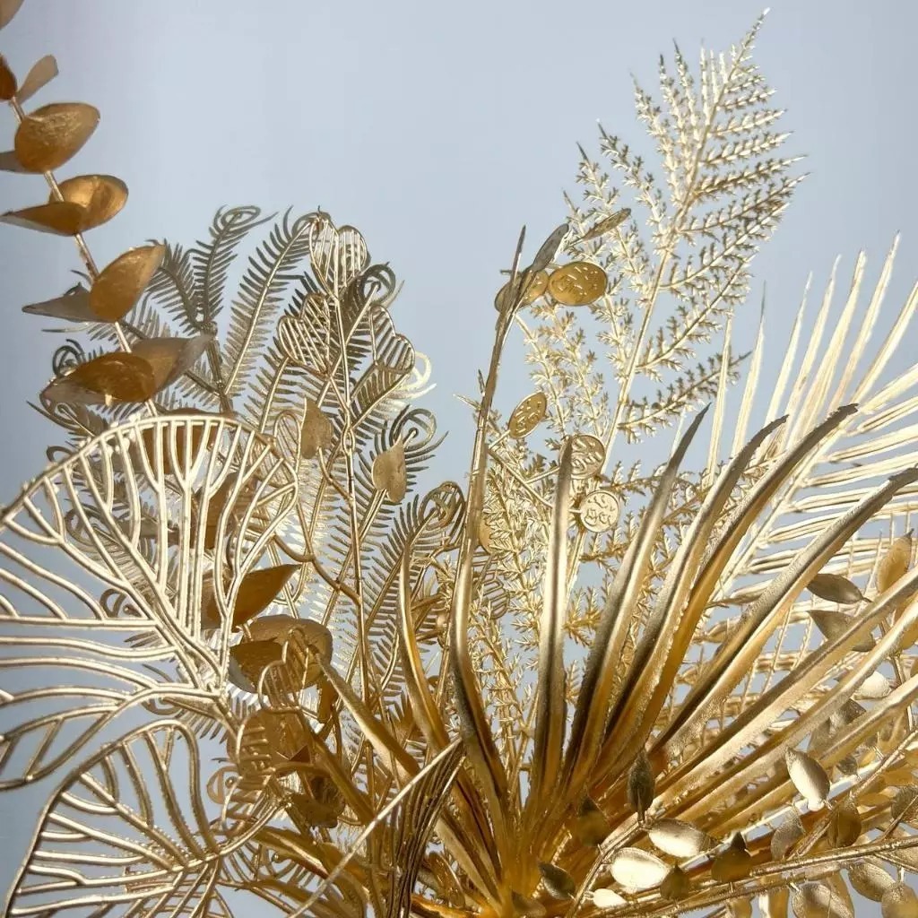 Kit 3 a 12 Flor Artificial Dourada Folhas Diversas Para Decoração De Natal Casa Casamento -JZ803068