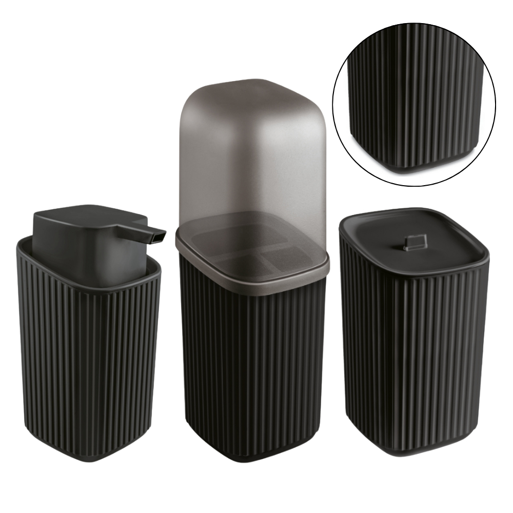 Kit 3 Acessórios Banheiro com Porta Sabonete Líquido Porta Algodão Porta Escovas canelado- Usual