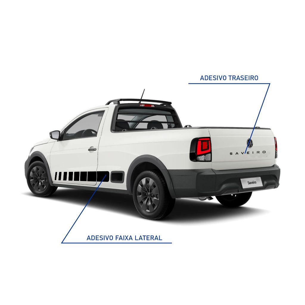 Kit 3 Adesivos Saveiro 2024 Embrema Lateral E Traseira Tampa Acessórios Personalizado Preto Brilho VW143