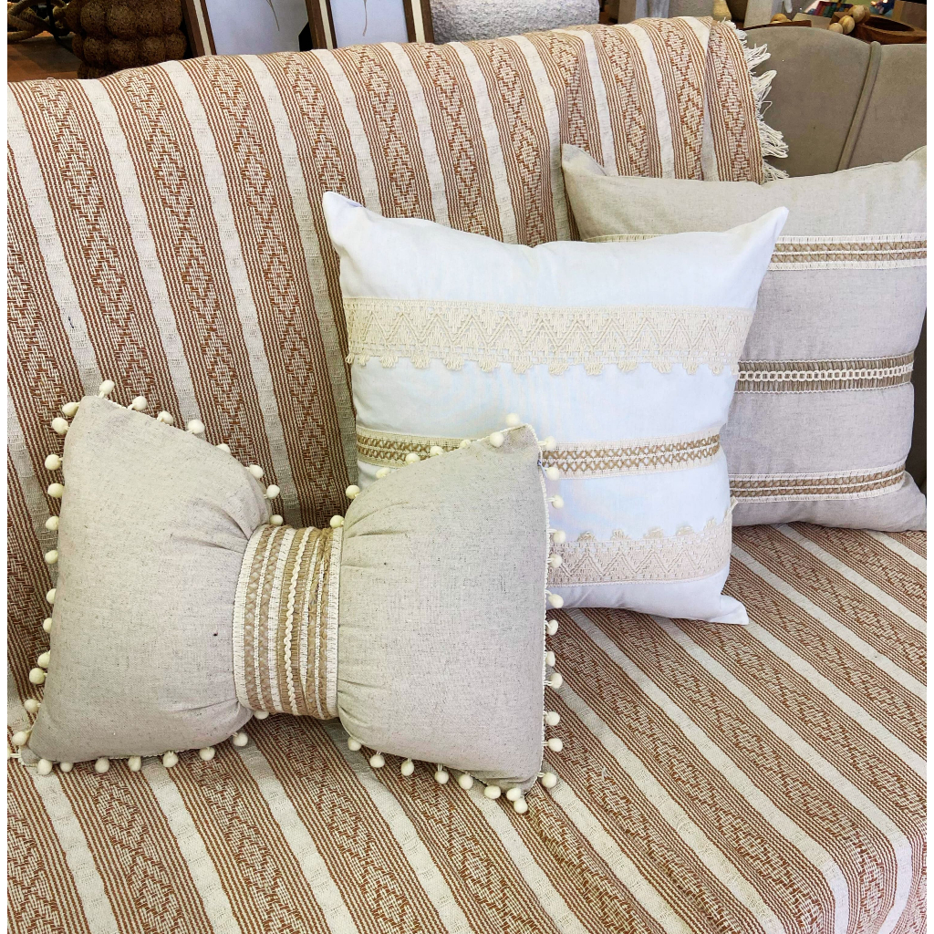 Kit 3 Almofadas Cheias Estilo Boho Chic com Laço – Exclusivo