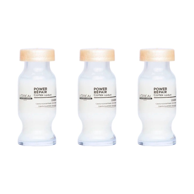 O Kit contém: 3 - Ampolas Absolut Repair Powerdose 10ml - L'Oréal Ampola de tratamento para cabelos coloridos. L'Oréal Professionnel Powerdose fixa e potencializa a tonalidade, enquanto combate o o desbotamento e adiciona brilho intenso. Sobre o Produto: Ampola de tratamento para cabelos extremamente danificados. Repara desde o interior, devolvendo brilho, maciez e proteção. Com alta concentração de nutrientes, L'Oréal Professionnel Absolut Repair Power Repair Cortex Lipidium penetra de imediato na fibra capilar, reconstruindo instantaneamente as zonas sensibilizadas. Modo de usar: Com o cabelo limpo e úmido, distribua todo o produto da ampola sobre o comprimento e pontas. Deixe agir alguns minutos e, então, enxágue.