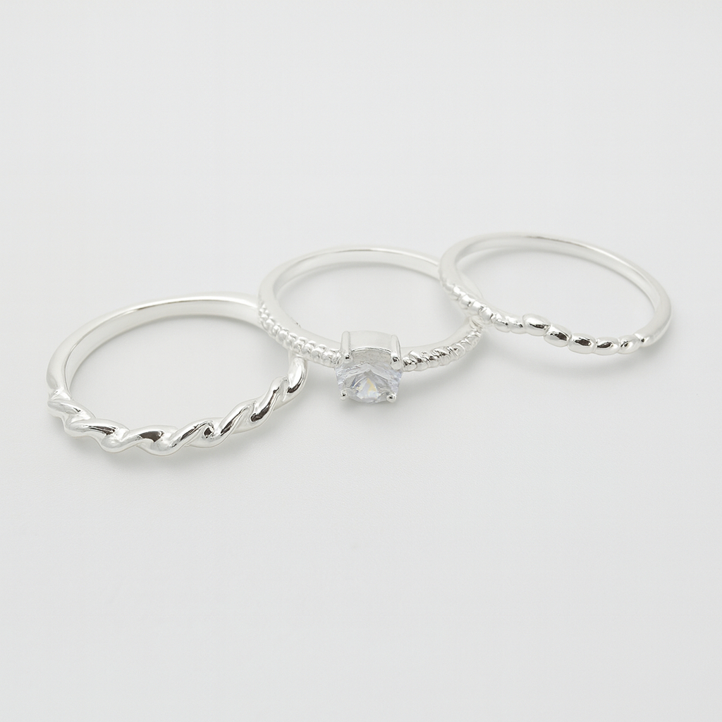 Kit 3 Anéis Femininos com Design Torcido, Solitário Cravejado em banhado e Prata 925 e Ouro 18k