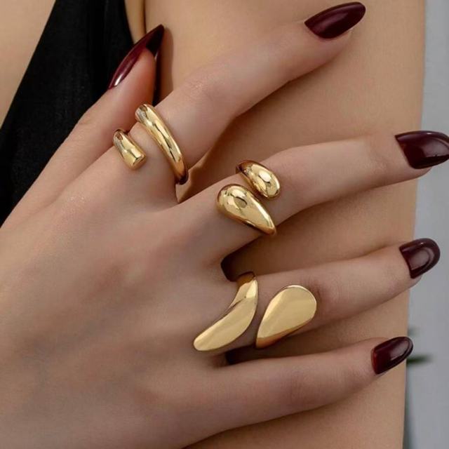 Kit 3 Anéis Femininos Irregulares Modernos Ajustável Banhados a Ouro 18K e prata 925