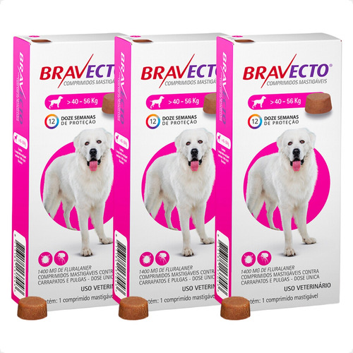 Kit 3 Antipulgas e Carrapatos MSD Bravecto para Cães de 40 a 56 Kg - 1400 mg