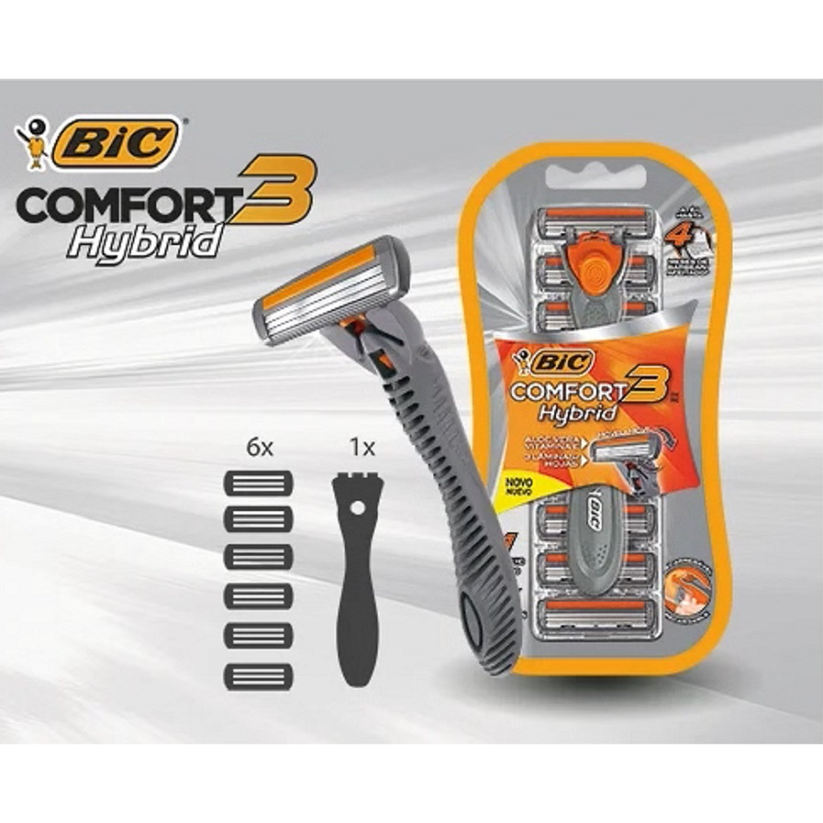 Descubra o segredo para um barbear impecável com o Aparelho de Barbear Comfort 3 Hybrid! Desenvolvido com o objetivo de auxiliar e facilitar o momento de barbear. Suas 3 lâminas promovem um excelente desempenho, proporcionando um barbear mais rente e sem cortes. Com um corpo ergonômico, oferece uma pegada mais firme. Além disso, possui uma cabeça móvel para melhor controle no barbear, fita lubrificante com aloe vera e vitamina E, que ajuda a evitar a irritação da pele, deixando-a lisinha como você nunca viu. E não para por aí! Cada embalagem contém 6 cartuchos, o suficiente para até 4 meses de barbear perfeito. Para um barbear mais rente e confortável. Com Aloe Vera e Vitamina E. Cabeça móvel. Contém: 3 kits com 3 aparelhos + 18 Cartuchos.