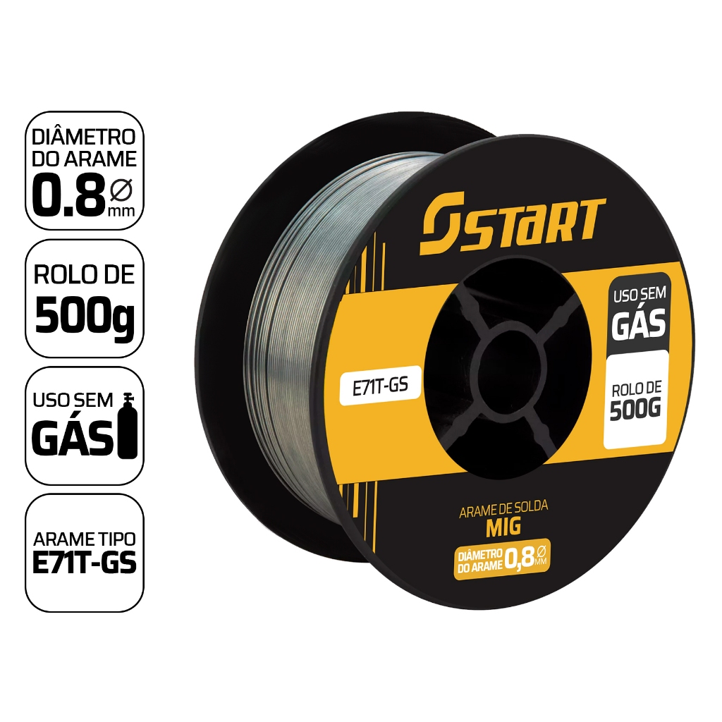 Kit 3 Arames de Solda MIG 0,8mm Tubular sem uso de gás 0.5KG Start