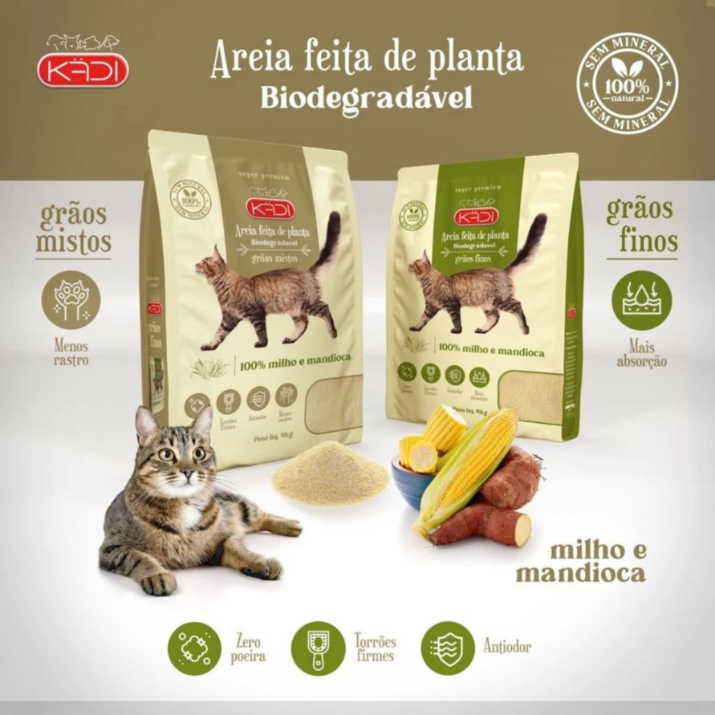 Kit 3 Areia Biodegradável Kadi Grãos Finos Gatos Grão Fino Cat Gato Kit Total 6KG Milho Mandioca Bio