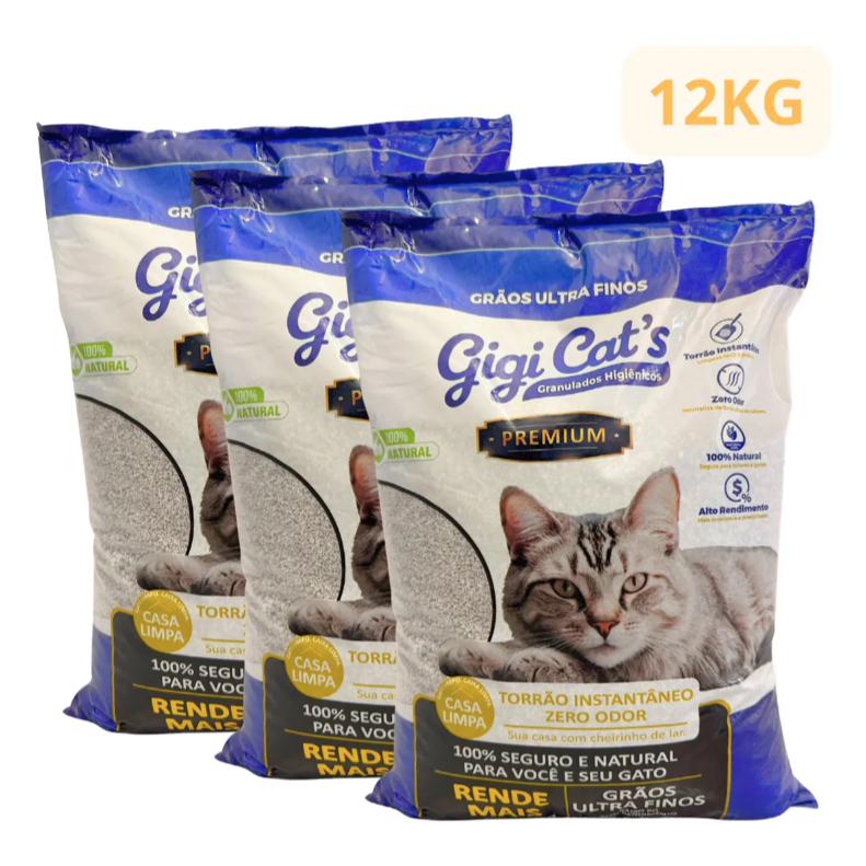 Kit 3 Areias P/ Gatos Higienica 4kg Gigi Cats Grãos Finos