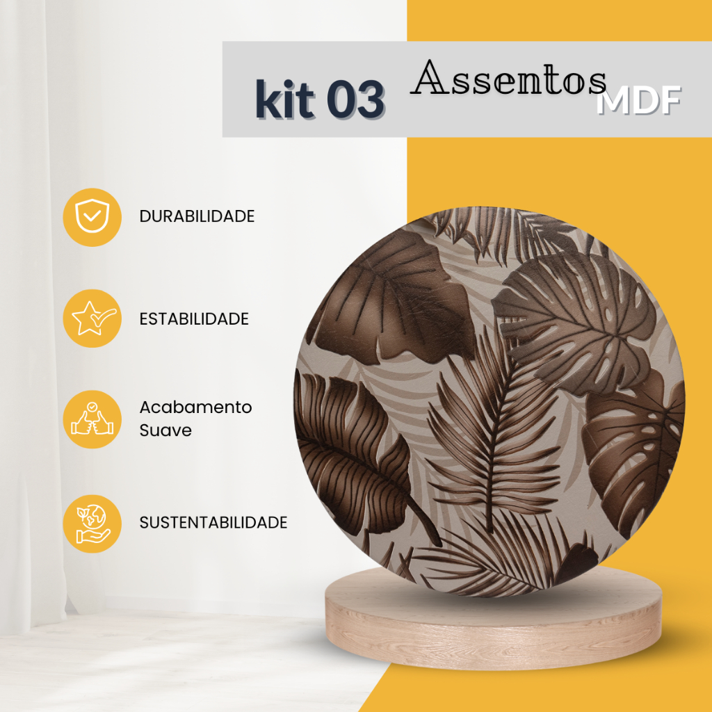 O assento para banqueta em napa sintética é uma peça de alta qualidade que oferece um excelente conforto e uma aparência elegante. Feito com um material durável e fácil de limpar, este assento é perfeito para ser utilizado em ambientes residenciais ou comerciais. O assento é projetado para ser confortável e ergonomicamente correto, proporcionando um suporte ideal para a postura do usuário. A superfície lisa e macia oferece um assento confortável, permitindo que o usuário fique sentado por longos períodos sem desconforto. É perfeito para uma ampla variedade de decorações, já que a napa sintética está disponível em uma variedade de cores e estilos, permitindo que você encontre a opção perfeita para o seu espaço. Em resumo, o assento para banqueta é uma opção elegante, confortável e durável para qualquer ambiente. MEDIDA : 32CM DE DIÂMETRO ACOMPANHA 3 UNIDADES Ficamos a disposição e no aguardo da sua compra !!!!
