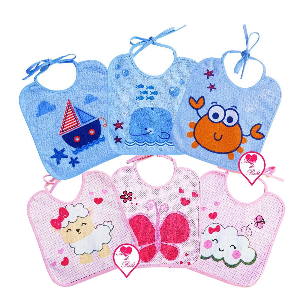 Kit 3 Babador Felpudo Menino e Menina com Tecido 100% Algodão e Forro Impermeável
