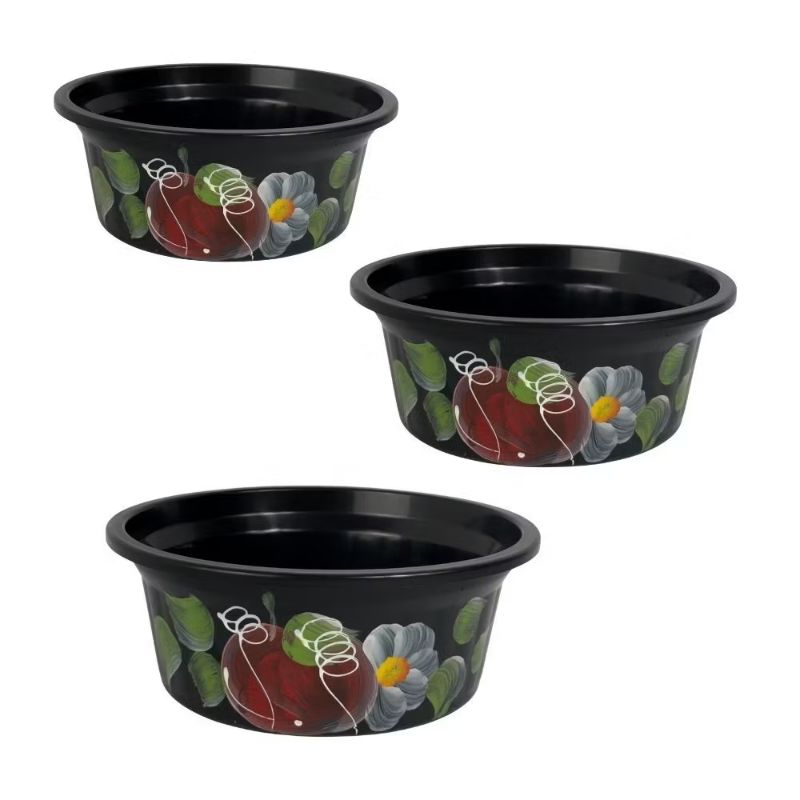 Kit 3 Bacias Plásticas Caneladas Decoradas a mão para Cozinha Multiuso Tamanhos PMG