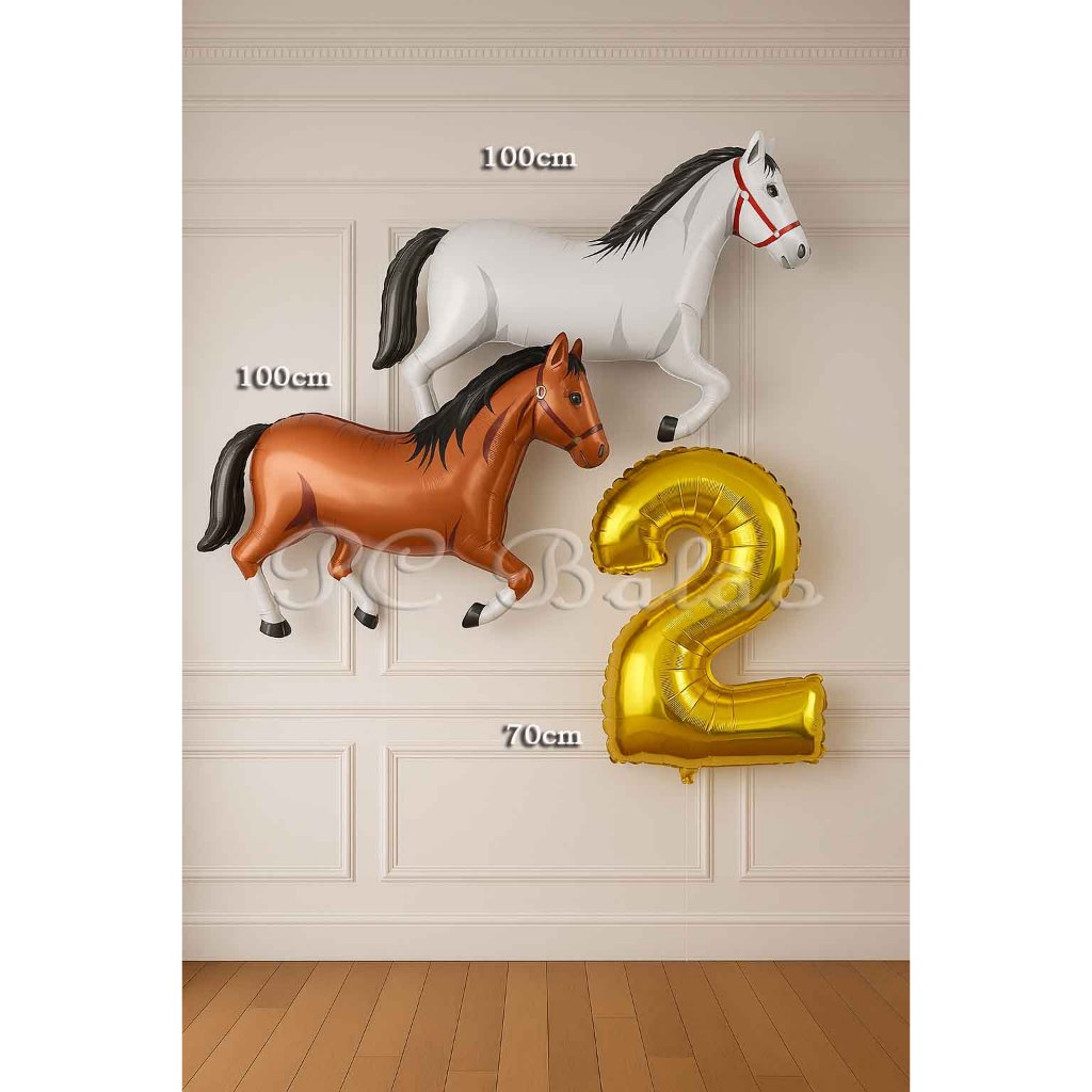 Kit 3 Balão Metalizado 2 CAVALO GIGANTE ( MARROM E BRANCO ) + N° 70CM DOURADO FAZENDINHA - FAZENDA