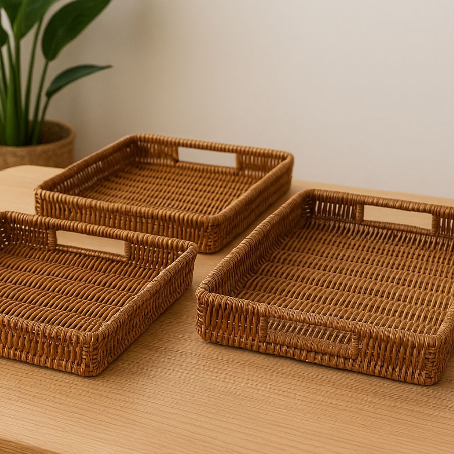 kIt 3 Bandejas Organizadora RETANGULAR Cesto para servir Café, Frios, Doces e Petiscos