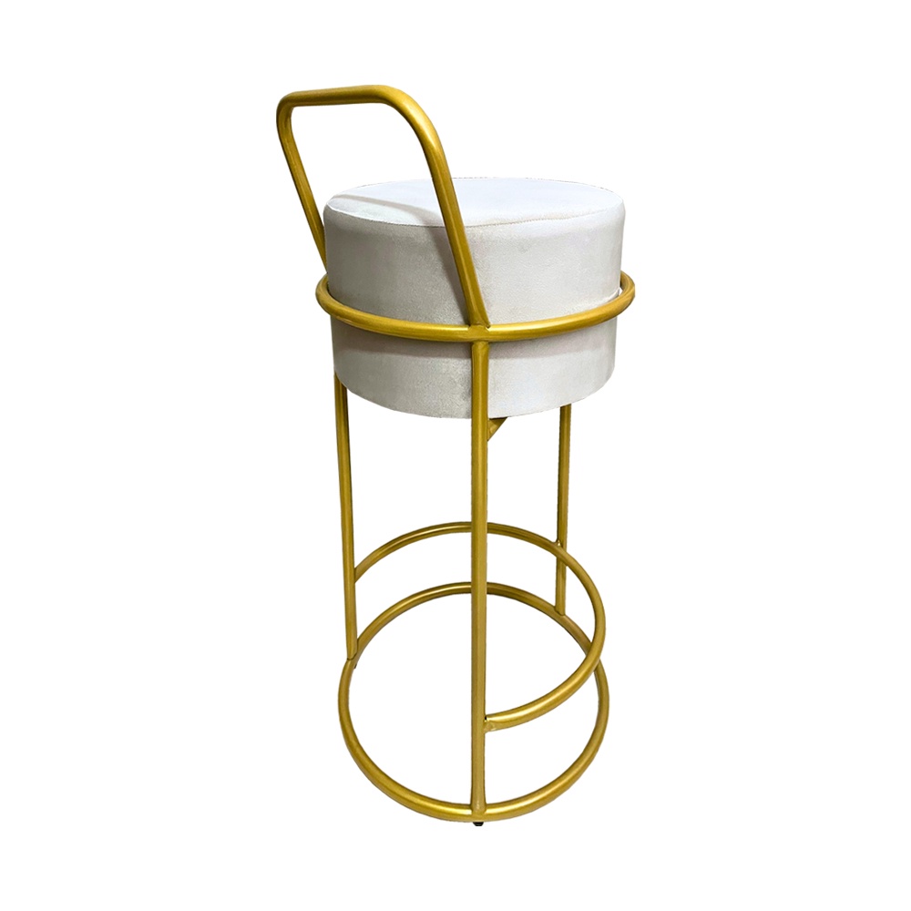 Kit 3 Banquetas Alta Redonda Base Dourada Veludo - Bege